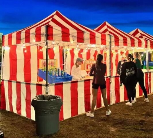 Carnival Tents 10' X 10' Must be anchored when sent updoors. Either Staked or Sand Bags. The rate includes SET UP & TAKE DOWN.The rate includes SET UP & TAKE DOWN, except when left over night, TENT must be lowered or folded up. Starting at .