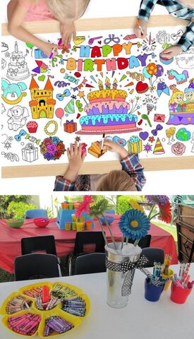 Coloring Table C/W Kids Table, 4 Chairs Coloring Sheets,& Crayons